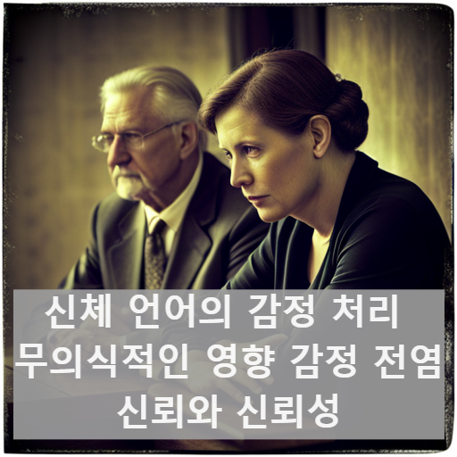 신체 언어의 감정 처리는 종종 무의식적인 영향을 주면서 우리는 다른 사람의 신체 언어를 자연스럽게 인식하고 해석하는 경향이 있습니다. 이러한 무의식적인 영향은 여러가지를 할 수가 있는것을 볼 수가 있습니다.